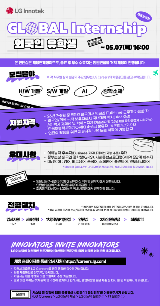 [LG이노텍] 2026년 채용 연계형 Global Internship – 외국인 유학생