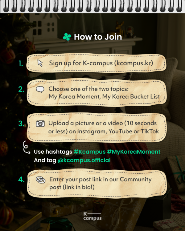 ⦁ Use hashtags #Kcampus #MyKoreaMoment